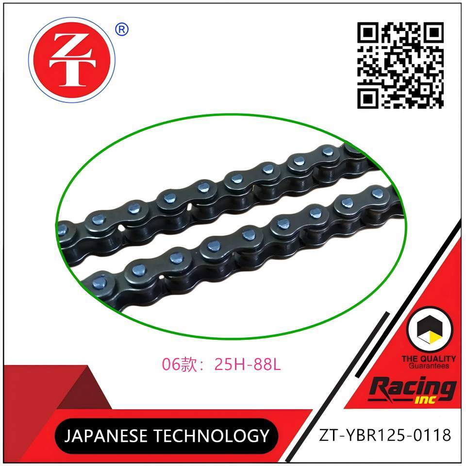 YBR125 time gauge chain, specification 25H-88L and 06 YBR125 valve system fully match, directly replace the original time gauge chain without adjusting the slink wheel; Adopt wear-resistant alloy material, roller and chain piece of high hardness, wear resistance, tensile resistance, to ensure the stability of timing transmission; Small pitch error, closely meshing with camshaft/crankshaft slink wheel, avoiding valve timing offset, ensuring engine power output; The surface is covered with anti-rust coating to adapt to the humid and hot environment inside the engine and extend the service life of the chain; Install the new chain after removing the old chain, and the gas distribution can be timely, and the adaptability is strong.![]()